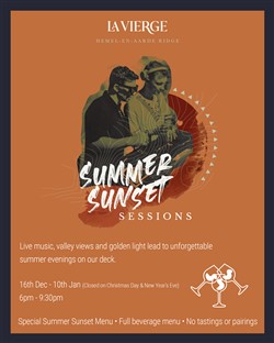 Special Summer Sunset Menu/ Full Beverage Menu/ No tastings or pairings.