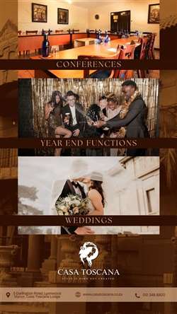 Whether you're planning a stylish corporate function, a festive year-end party, or a fairy tale wedding under the stars, Casa Toscana delivers charm, professionalism and world-class hospitality.