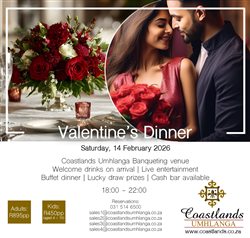Don't miss the chance to create cherished memories with your loved ones at this Valentine's Dinner extravaganza hosted by Coastlands Umhlanga Hotel and Convention Centre.