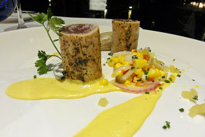 Usually a favourite of mine, Azure's version of Springbok Medallions, did not stand out at all, but the maize-meal roasted butternut tower it rested on did - a splendid and tasty touch of local.