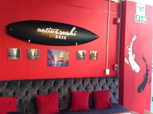 The interior decor of Active Sushi on Bree is industrial with exposed brickwork and pipes, very high ceilings, comfortable bench seats, wooden sushi counter (that runs the length of the front of the restaurant ) there is a combination of wooden and plastic chairs and beautiful Iranian carpets. You have the option of dining Al Fresco in the front with added heaters to take the chill out of those cold winter nights. Popular dishes at Active Sushi include the Prawn Tempura, and chicken and prawn noodles.