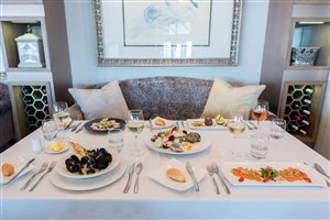 Baia welcomes you to the pleasure zone. Linger at tables laid in crisp, white linen, illuminated by the soft pink glow of hurricane lamps. Baia is the shape of the future from the chic bar and lounge zones to the dining area and the terraces. The spacious interior brings the gorgeous colours and natural shapes of Table Bay inside, from the plush wavy couches to the white mosaic tiles in the timeless Mediterranean genre.