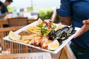 The Black Marlin offers an extensive menu with the main emphasis on seafood, complemented by the other choices of fine contemporary cuisine. House specialities include Cape Rock Lobster, Kingklip Spit (grilled kingklip wrapped in bacon and served on skewers), Sesame Prawns served with peanut satay sauce, seafood platters, oysters and mussels. Through the many years of providing top quality fresh seafood and impeccable service to the locals and foreign tourists, this restaurant has become world famous. The staff are friendly, knowledgeable and highly trained.