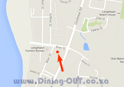 Travel from Cape Town CBD on the Table Bay Boulevard (N1) via the ramp to Paarl. Take exit 4 to merge onto Marine Drive (R27) toward Paarden Eiland / Milnerton / Table View / West Coast and continue to follow the R27. After 111km, turn left toward Oostewal Road. Travel for 6,2kms and continue straight onto Oostewal Road. After 4,2kms, turn right onto Bree Street and the destination will be on the left.