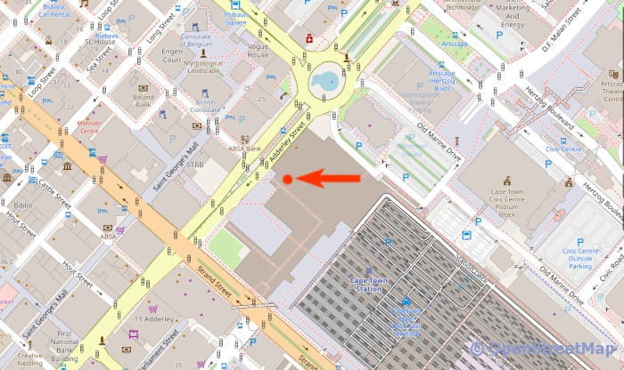 Get on N1 in Acacia Park from Century Blvd and Sable Rd. Head east on Century Blvd. Make a U-turn. At the roundabout, take the 2nd exit and stay on Century Blvd. Use the 2nd from the left lane to turn left onto Ratanga Rd. Ratanga Rd turns slightly left and becomes Sable Rd. Turn right to merge onto N1. Follow N1 to F W de Klerk Blvd. Take the Oswald Pirow Street exit from N1. Merge onto N1. Use the left 2 lanes to take the Oswald Pirow Street exit toward Heerrengracht. Continue on F W de Klerk Blvd. Take Heerengracht St to Adderley St in Foreshore. Continue onto F W de Klerk Blvd. Use the left 2 lanes to turn left onto Heerengracht St. At Coen Steytler Roundabout, take the 3rd exit and stay on Heerengracht St. At the roundabout, take the 2nd exit onto Adderley St. Destination will be on the left.