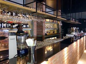 The warm, family oriented interior in traditional Cape Dutch farmhouse style with boxes stacked on the red cement floor and wine racks displayed, everyone feels welcome in this simple down to earth environment. Outside seating overlooks the Cape Town harbour with Table Mountain as the majestic background.