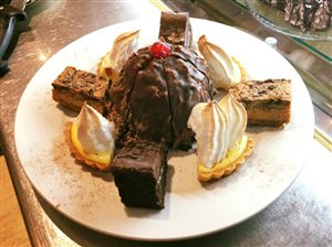 Main meals include pizza, burgers, stir fry, Kessler chops, rump steak and bobotie. The creamy chicken livers are highly recommended. For those who have a sweet tooth, there are freshly made desserts including Oreo brownies and the signature 'magic bars', which are made with crushed biscuit base, caramel, chocolate and coconut.