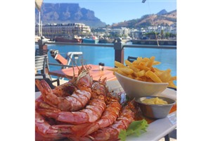 Take an umbrella shaded table on our terrace, at the African Queen bar, or in our streamlined interior, where wall-to-wall windows make the most of the picture-postcard backdrop of Table Mountain.