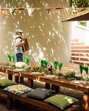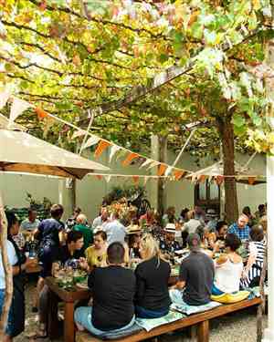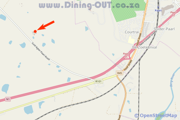Driving from Stellenbosch, head south on Andringa Street toward Merriman Avenue. Turn right at the 1st cross street onto Merriman Avenue and another right turn at the 1st cross street onto Bird Street. Turn right onto Adam Tas Road/R44 and continue to follow R44. Turn right onto Old Paarl Road/R101. Take a left onto Suid-Agter-Paarl Road, turn right for 97m. Take the left turn and Goatshed Restaurant at Fairview Wine Estate will be on the left..