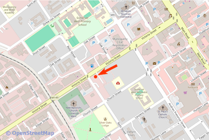 Travel from Cape Town towards Somerset West on the N2. One you reach Somerset West, turn left onto Victoria Street. The destination will be on the right after Reitz Street.