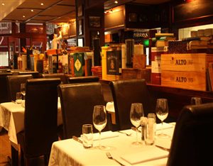 This Hussar Grill is situated in one of South Africa's oldest wine regions, Stellenbosch. The front entrance boasts a beautiful façade complete with brass lettering and leaded windows, leading onto the traditional-style grill room. The restaurant also offers sheltered tables outdoors on the piazza for al fresco dining in the warmer weather.
